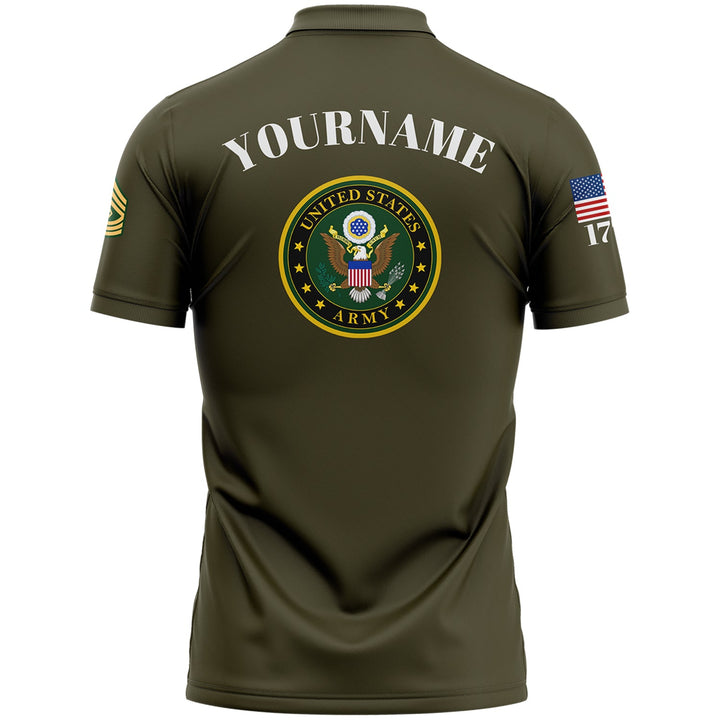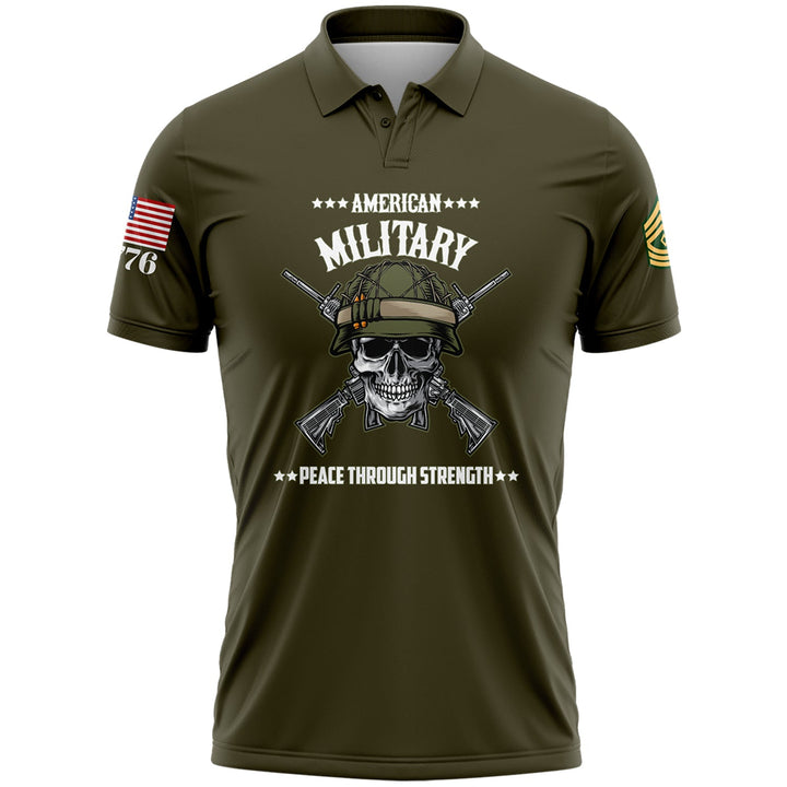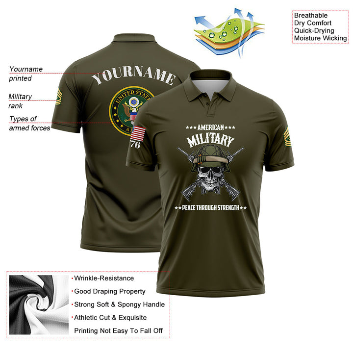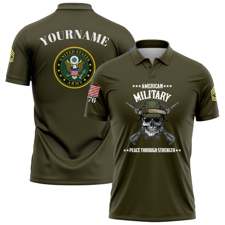Custom Olive Skull 1776 U.S Army Military Rank Name Golf Polo Shirt