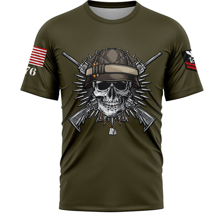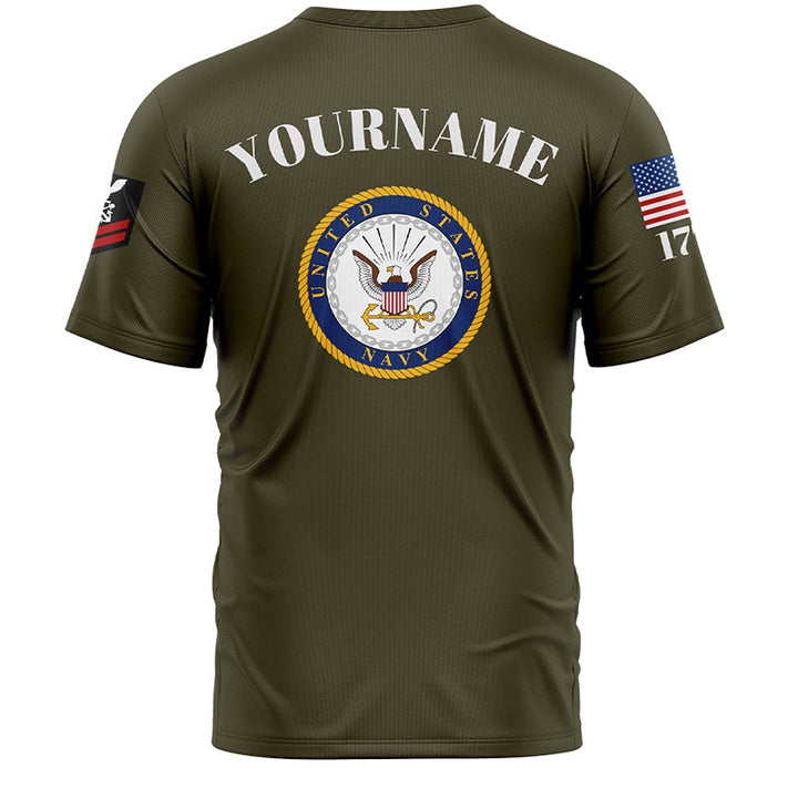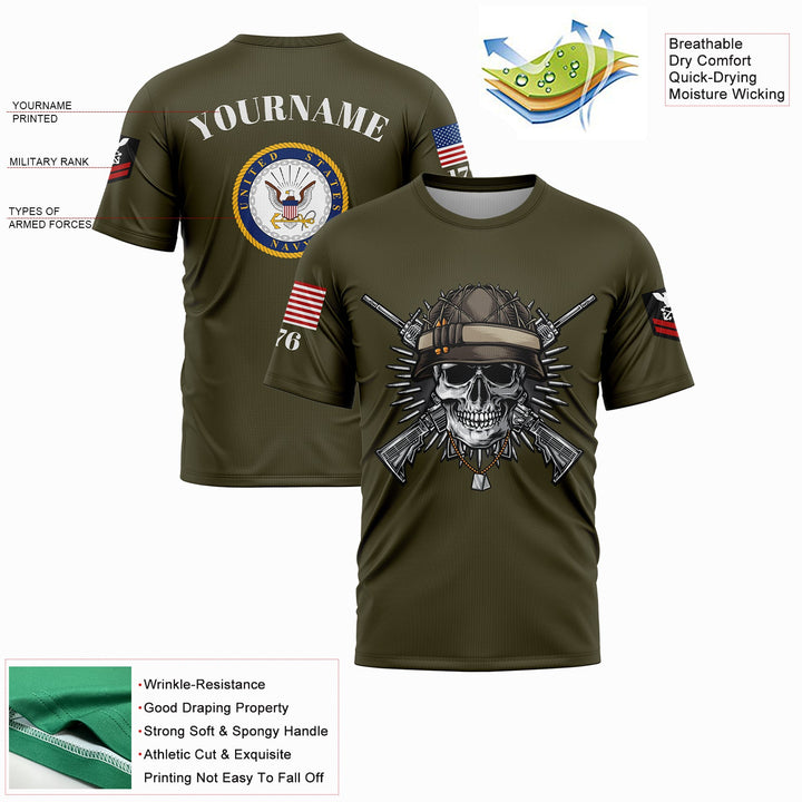 Custom Olive Skull 1776 U.S Navy Military Rank Name T-Shirt