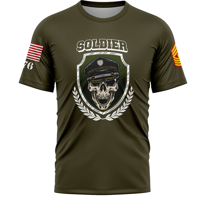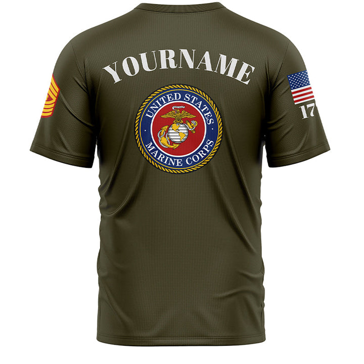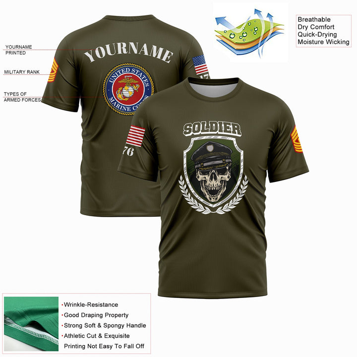 Custom Olive Skull Soldier 1776 U.S Marine Corps Military Rank Name T-Shirt