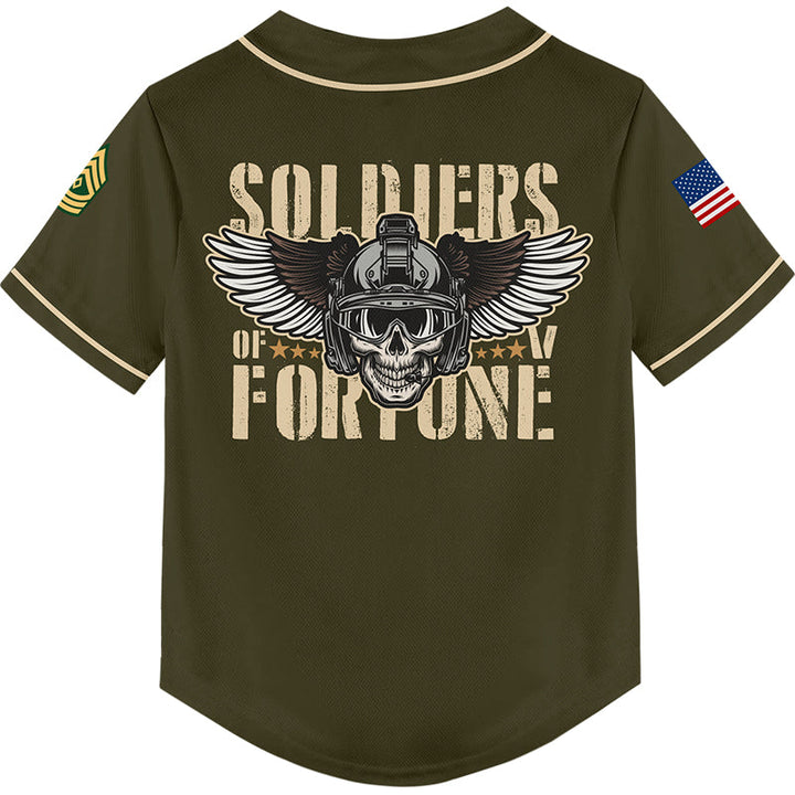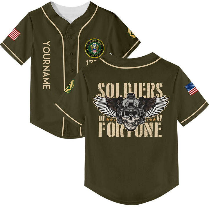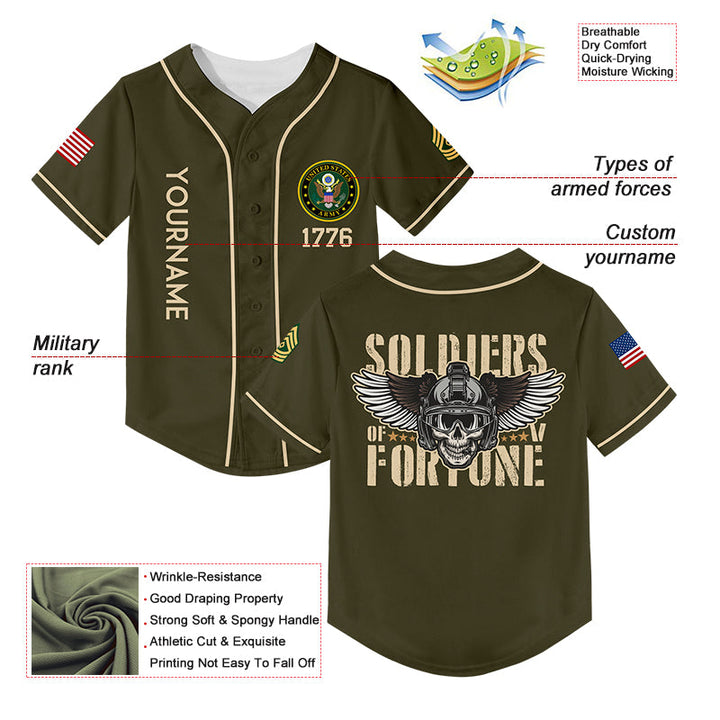 Custom Olive Skull Soldiers Of Fortune 1776 U.S Army Military Rank Name Baseball Jersey