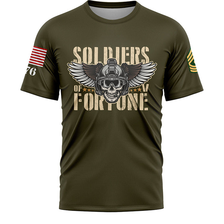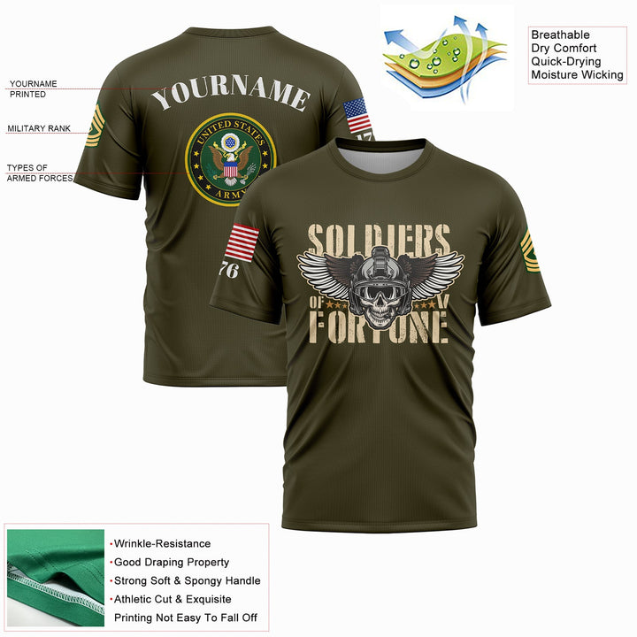 Custom Olive Skull Soldiers Of Fortune 1776 U.S Army Military Rank Name T-Shirt