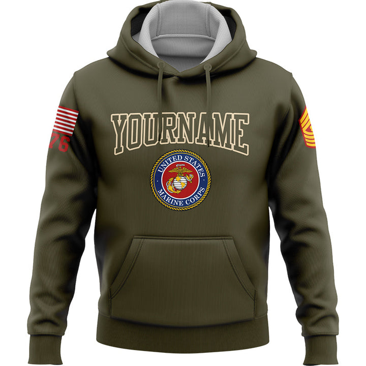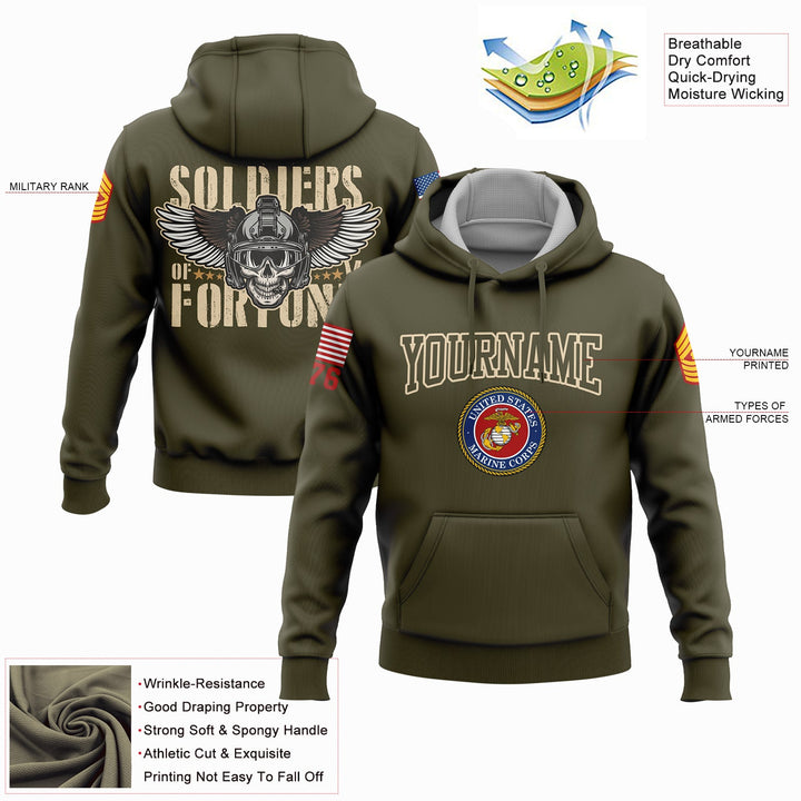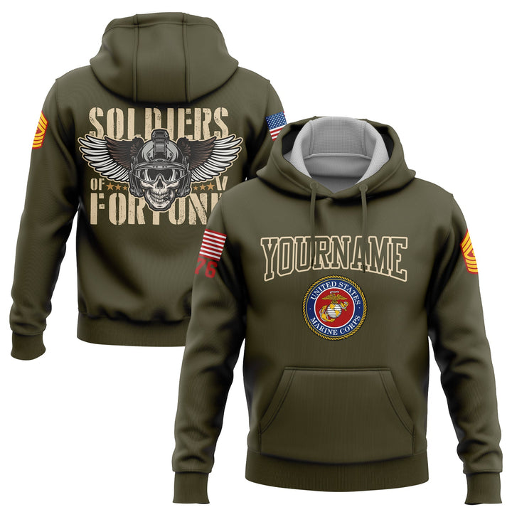 Custom Olive Skull Soldiers Of Fortune 1776 U.S Marine Corps Military Rank Name Hoodie