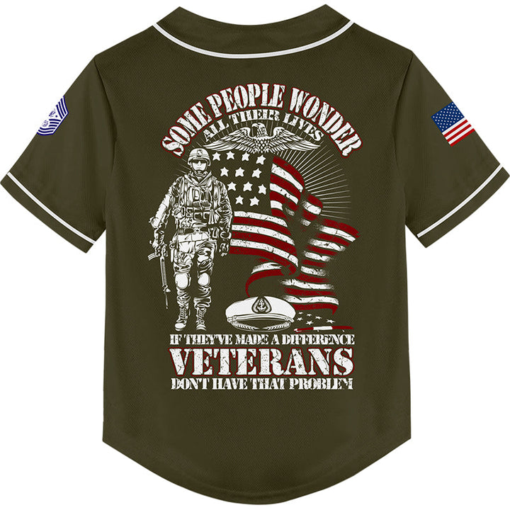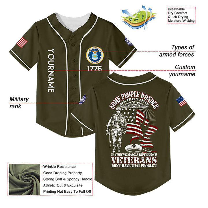Custom Olive Some People Wonder All Their Lives If They've Made A Difference Veterans Don't Have That Problem 1776 Flag U.S Air Force Military Rank Name Veterans Day Baseball Jersey | Father's Day Gifts
