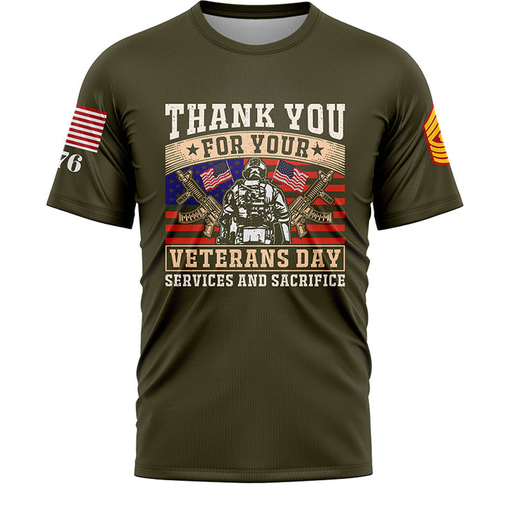 Custom Olive Thank You For Your Services And Sacrifice 1776 American Flag U.S Marine Corps Military Rank Name Veterans Day T-Shirt
