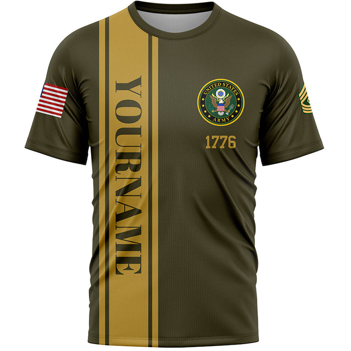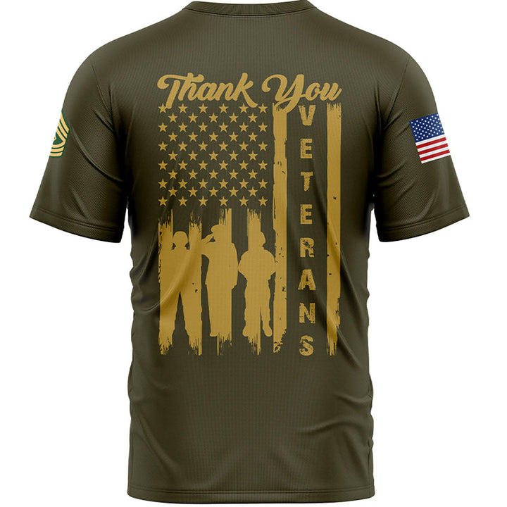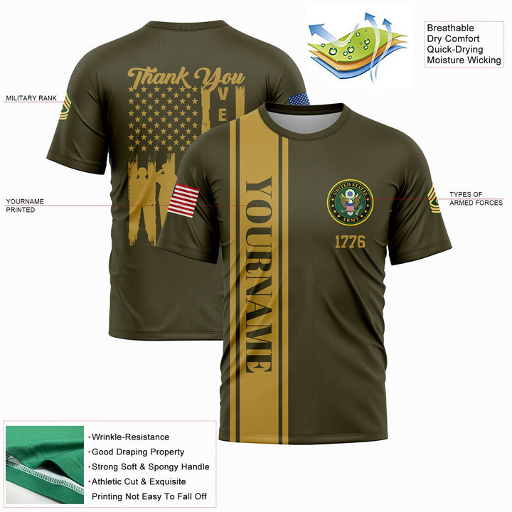 Custom Olive Thank You Veterans 1776 Flag U.S Army Military Rank Name Veterans Day T-Shirt | Father's Day Gifts