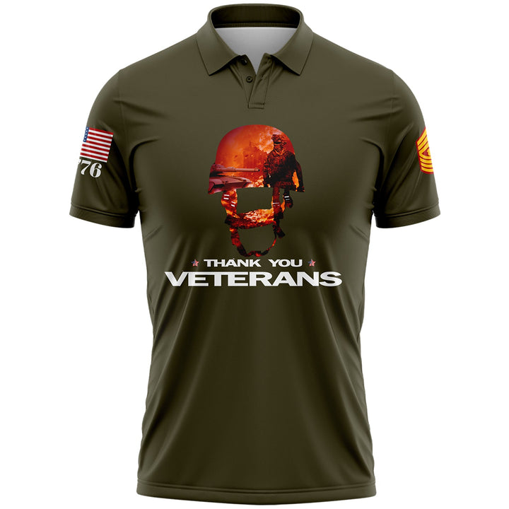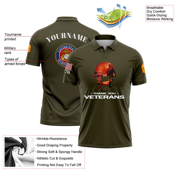 Custom Olive Thank You Veterans 1776 U.S Marine Corps Military Rank Name Golf Polo Shirt