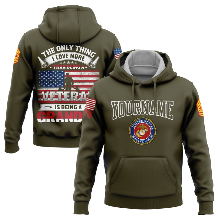 Custom Olive The Only Thing I Love More 1776 Flag U.S Marine Corps Military Rank Name Veterans Day Hoodie | Father's Day Gifts