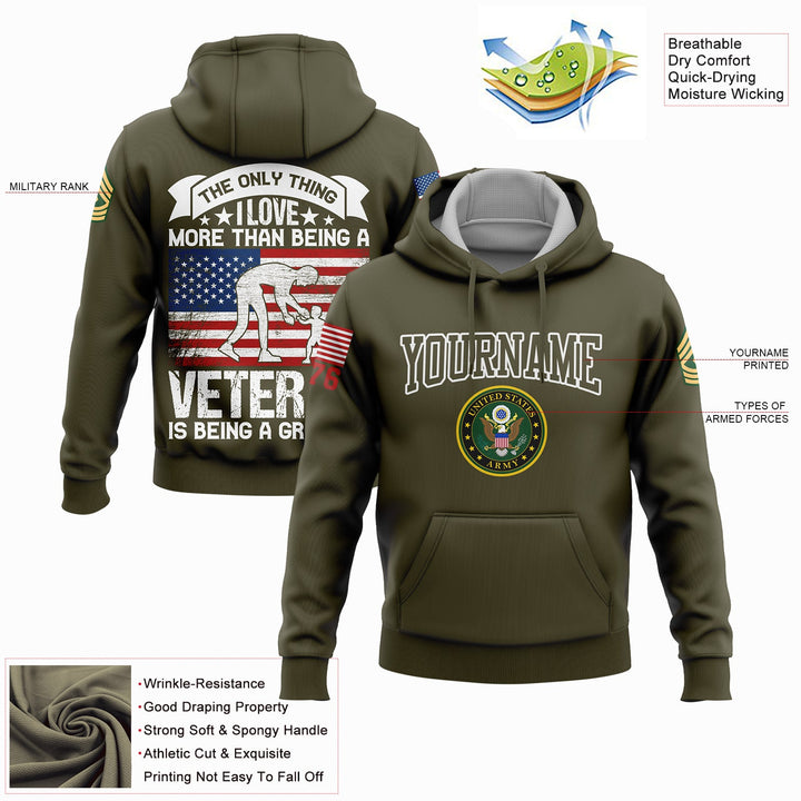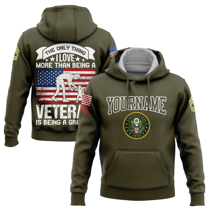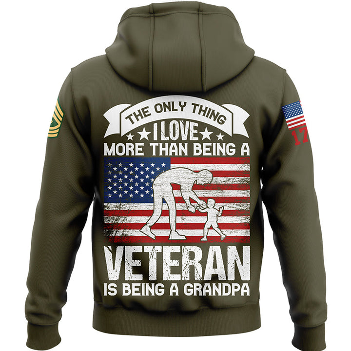 Custom Olive The Only Thing I Love More Than Being A Veteran Is Being A Grandpa 1776 Flag Army Military Rank Name Veterans Day Hoodie | Father's Day Gifts