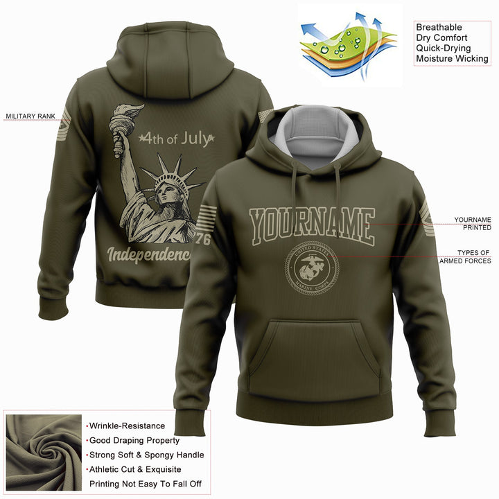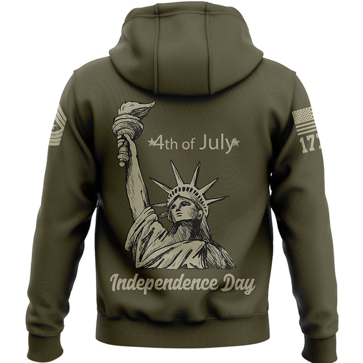 Custom Olive The Statue of Liberty 4th Of July Military Rank Name Independence Day Hoodie | Father's Day Gifts