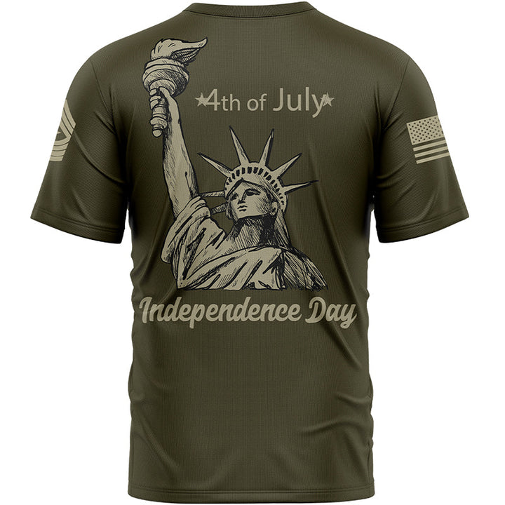 Custom Olive The Statue of Liberty 4th Of July Military Rank Name Independence Day T-Shirt