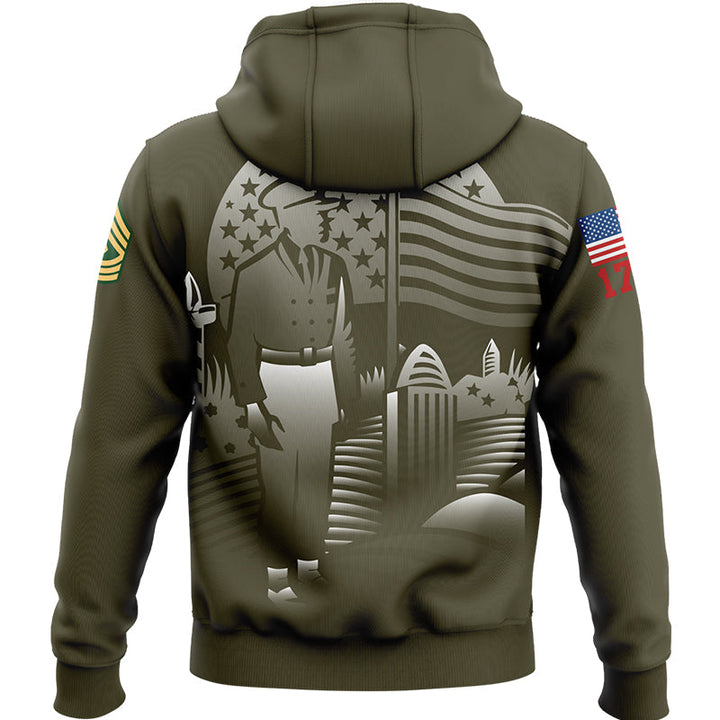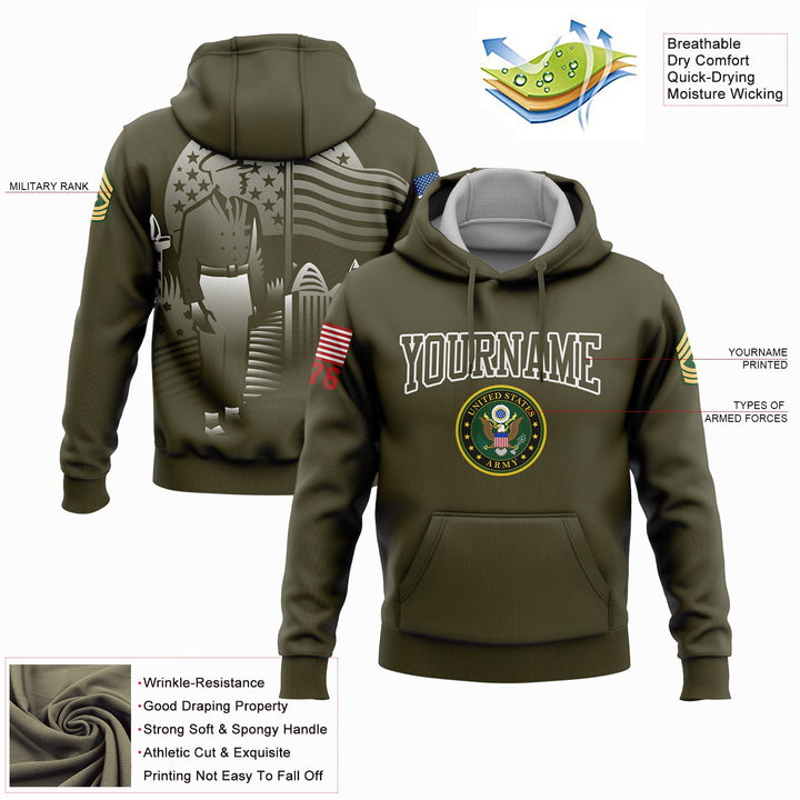 Custom Olive Tombstone 1776 American Flag U.S Army Military Rank Name Memorial Day Hoodie