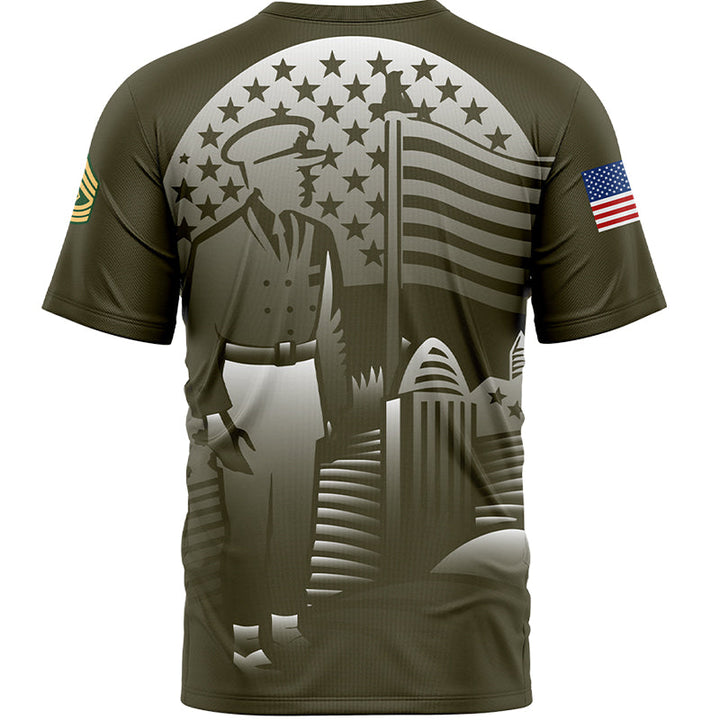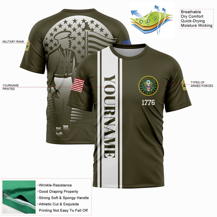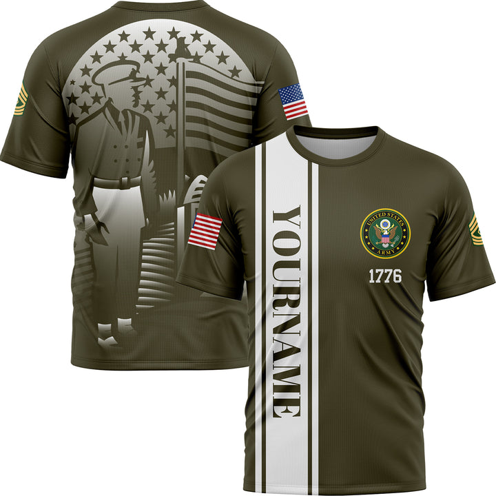 Custom Olive Tombstone 1776 American Flag U.S Army Military Rank Name Memorial Day T-Shirt