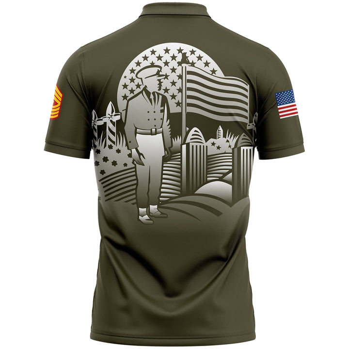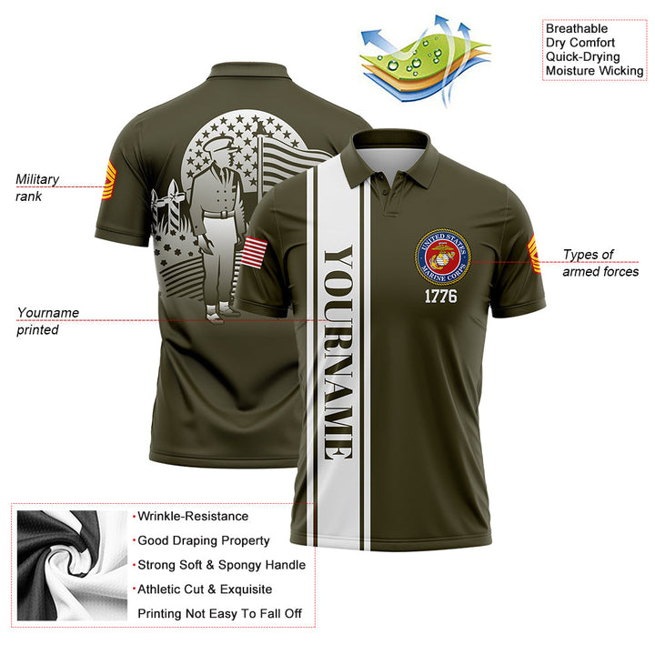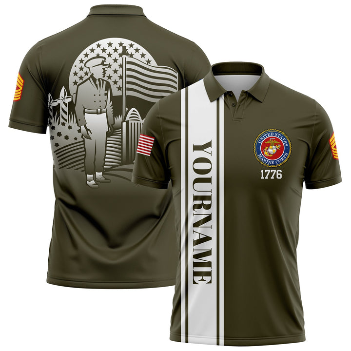 Custom Olive Tombstone 1776 American Flag U.S Marine Corps Military Rank Name Memorial Day Golf Polo Shirt