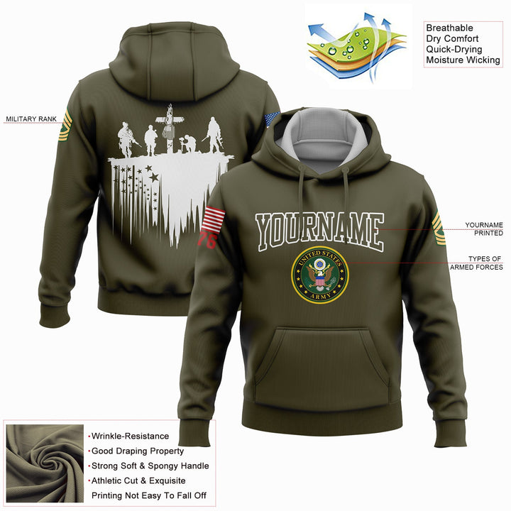 Custom Olive Tombstone Dog tag 1776 American Flag U.S Army Military Rank Name Memorial Day Hoodie