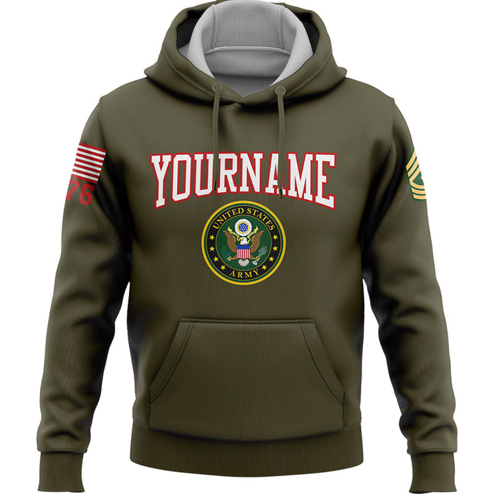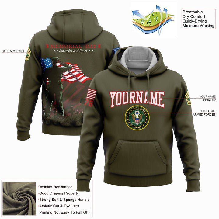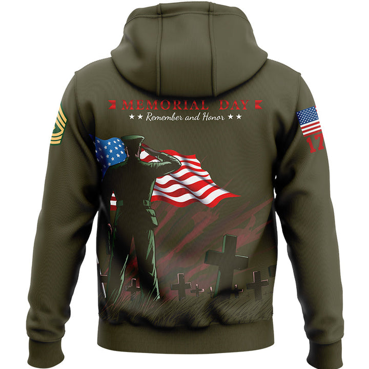 Custom Olive Tombstone Remember And Honor 1776 American Flag U.S Army Military Rank Name Memorial Day Hoodie