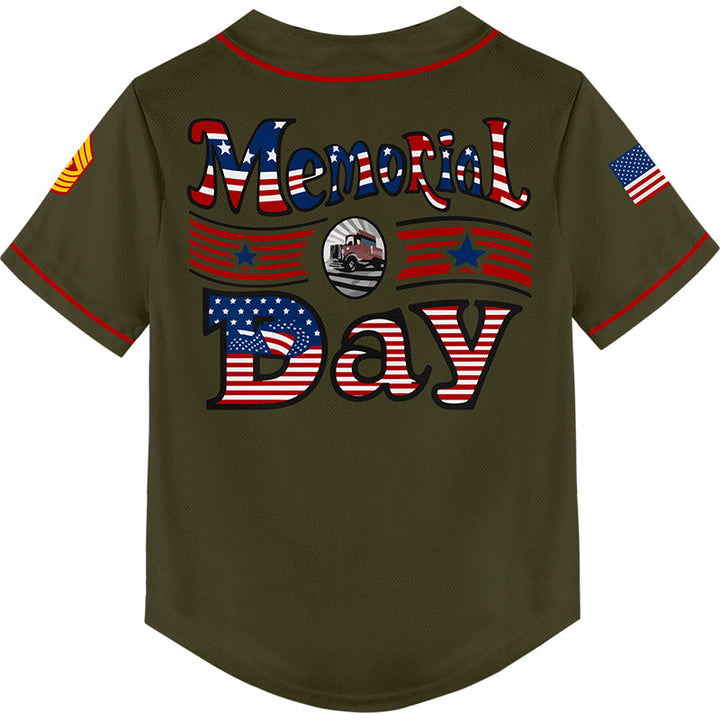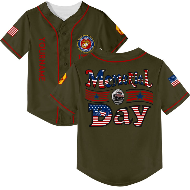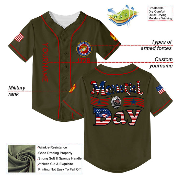 Custom Olive Truck 1776 American Flag U.S Marine Corps Military Rank Name Memorial Day Baseball Jersey