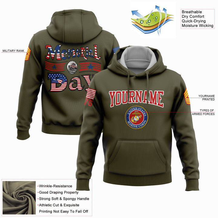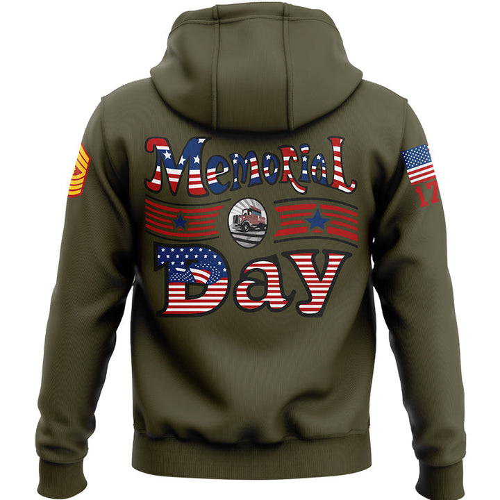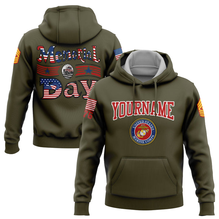 Custom Olive Truck 1776 American Flag U.S Marine Corps Military Rank Name Memorial Day Hoodie