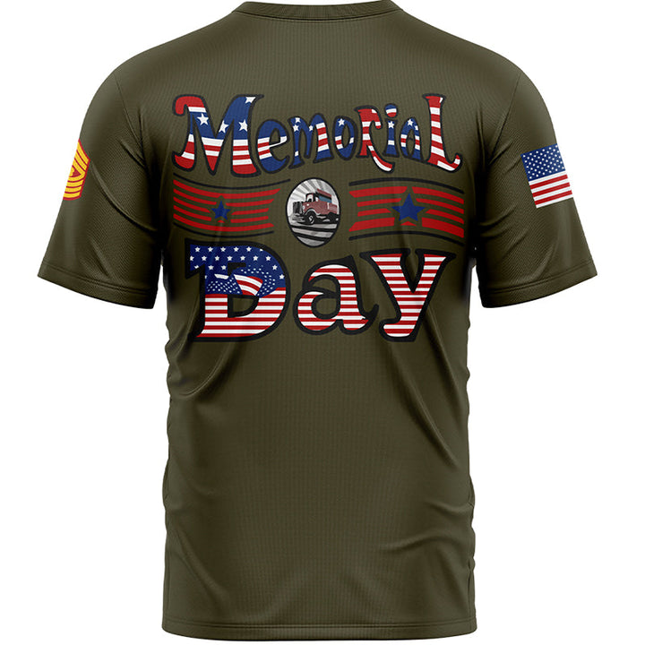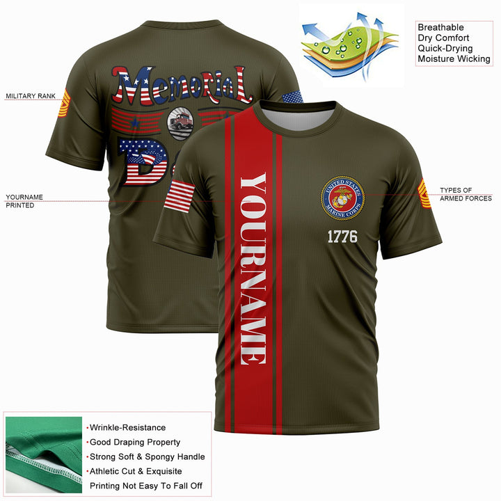 Custom Olive Truck 1776 American Flag U.S Marine Corps Military Rank Name Memorial Day T-Shirt