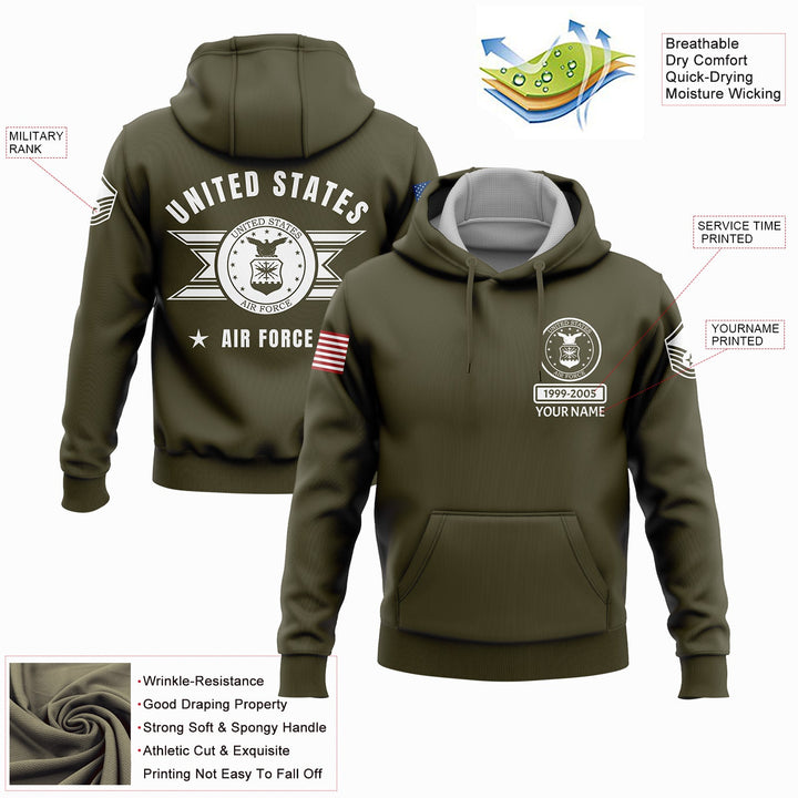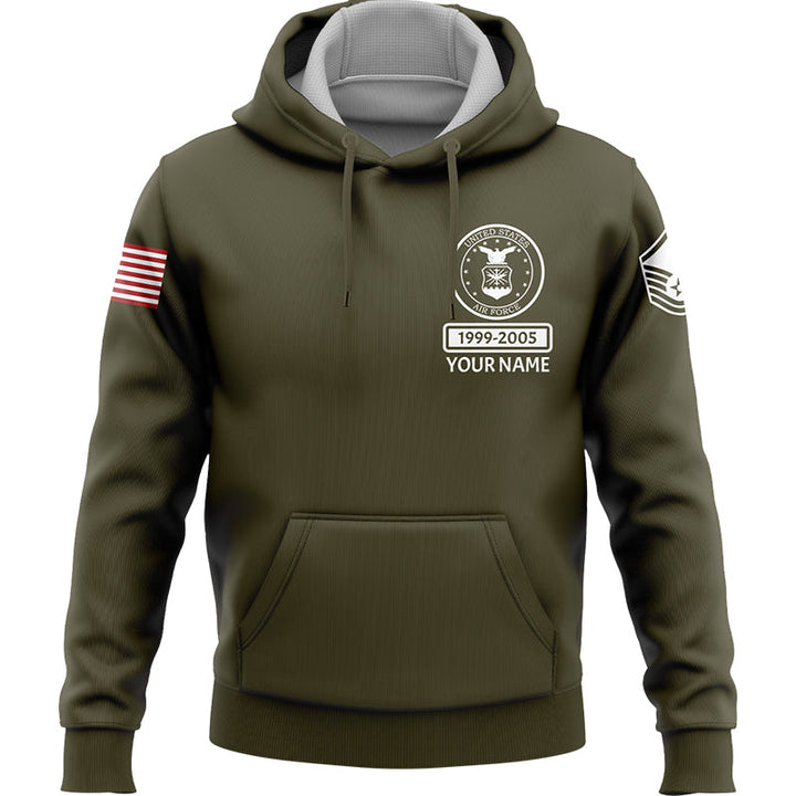 Custom Olive U.S Air Force Military Rank Name Hoodie