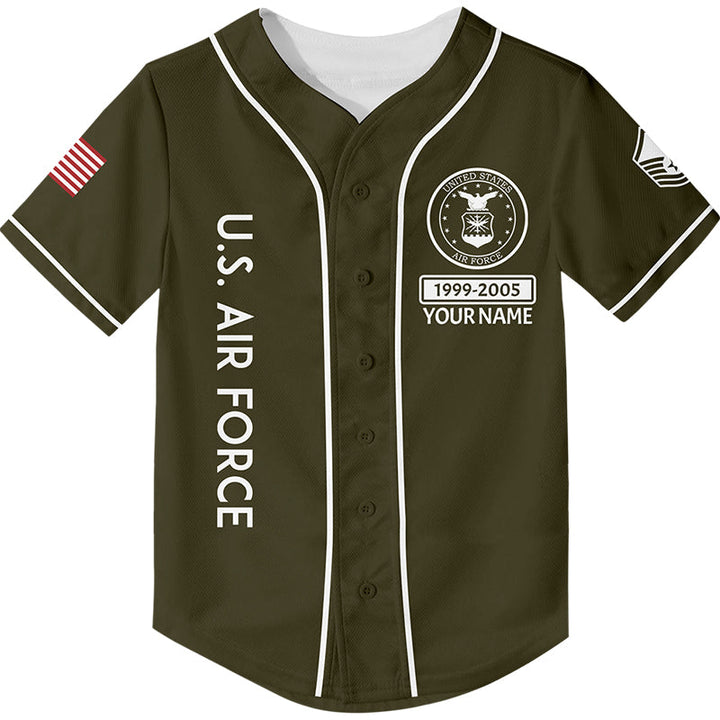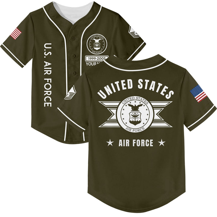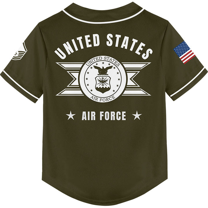 Custom Olive U.S Air Force Military Rank Veteran Name Baseball Jersey