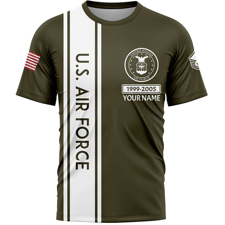 Custom Olive U.S Air Force Military Rank Veteran Name T-Shirt