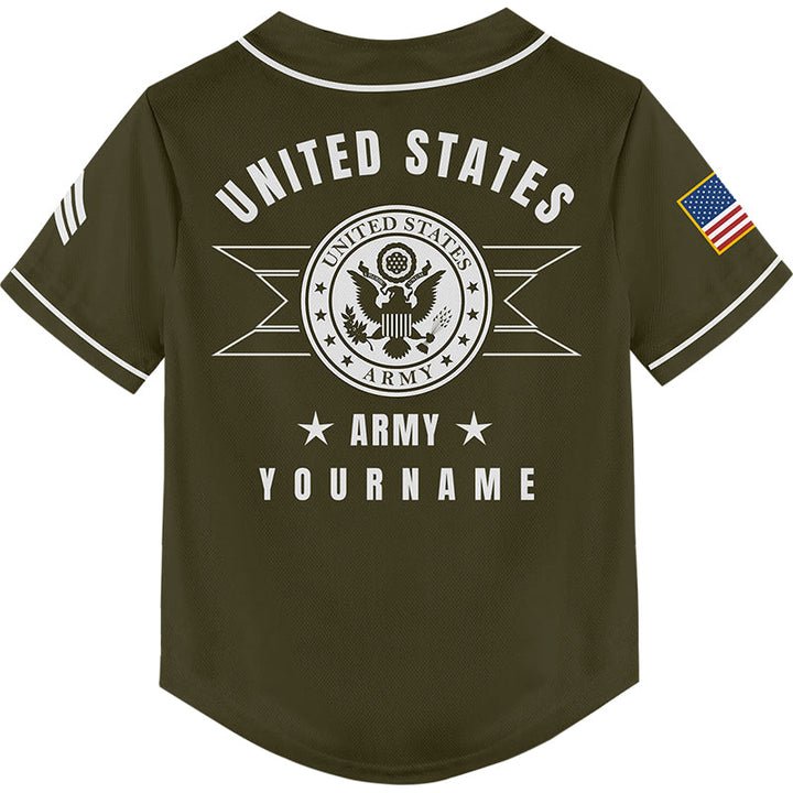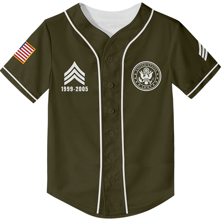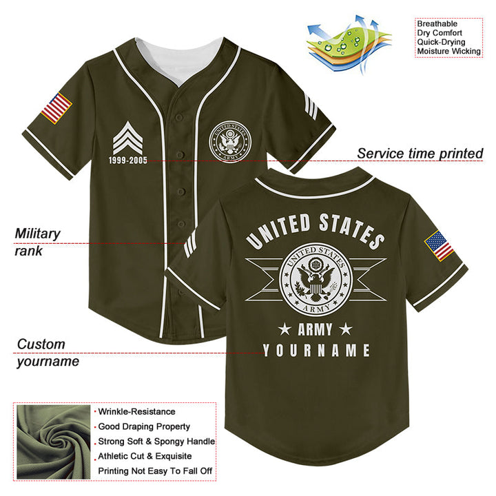 Custom Olive U.S Army Military Rank Veteran Name Baseball Jersey
