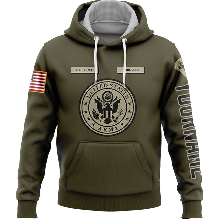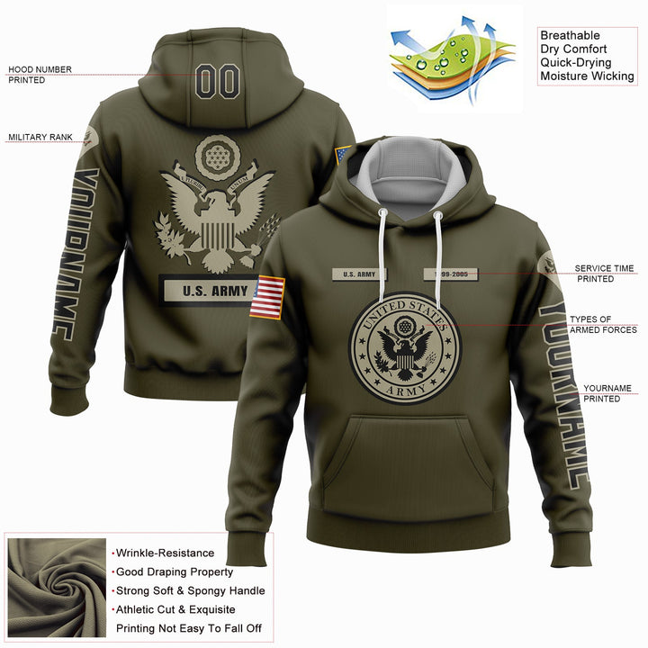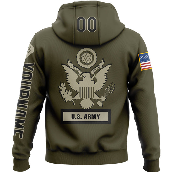 Custom Olive U.S Army Military Rank Veteran Name Hoodie