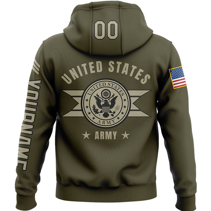 Custom Olive U.S Army Military Rank Veteran Name Number Hoodie
