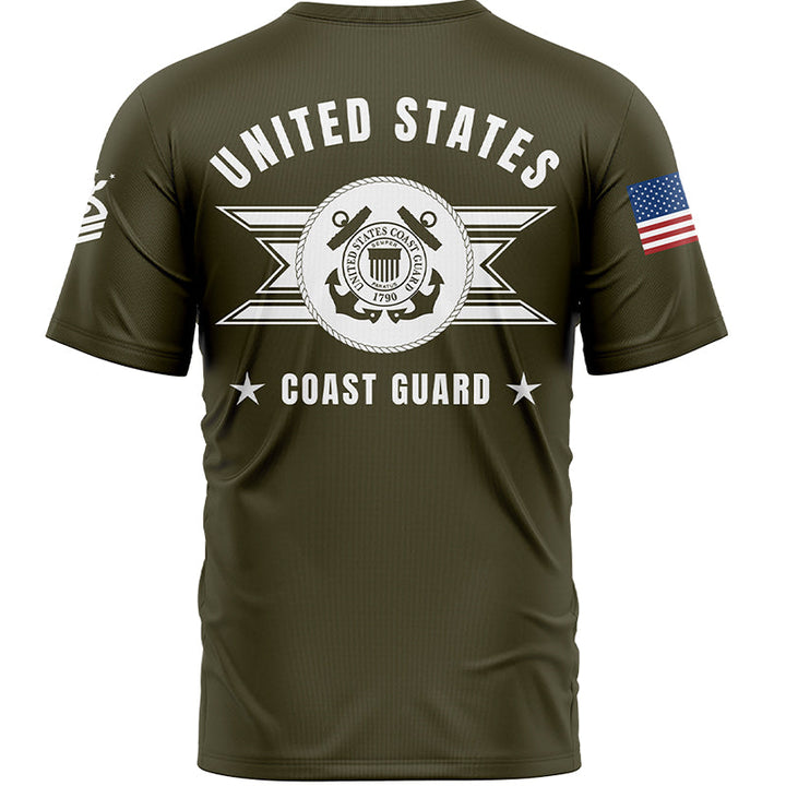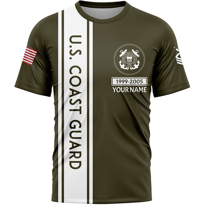 Custom Olive U.S Coast Guard Military Rank Veteran Name T-Shirt