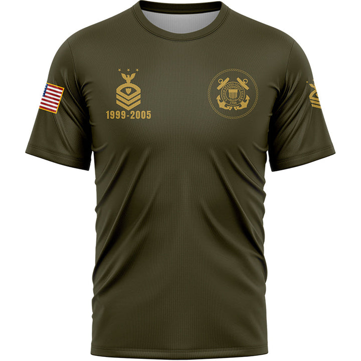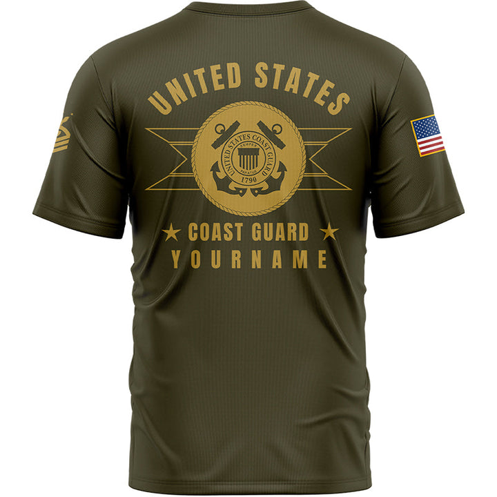 Custom Olive U.S Coast Guard Military Rank Veteran Name T-Shirt