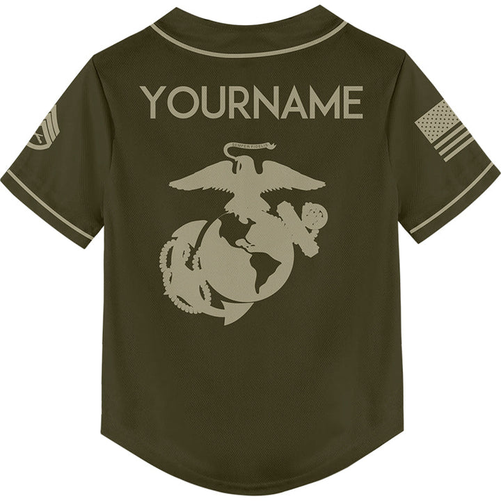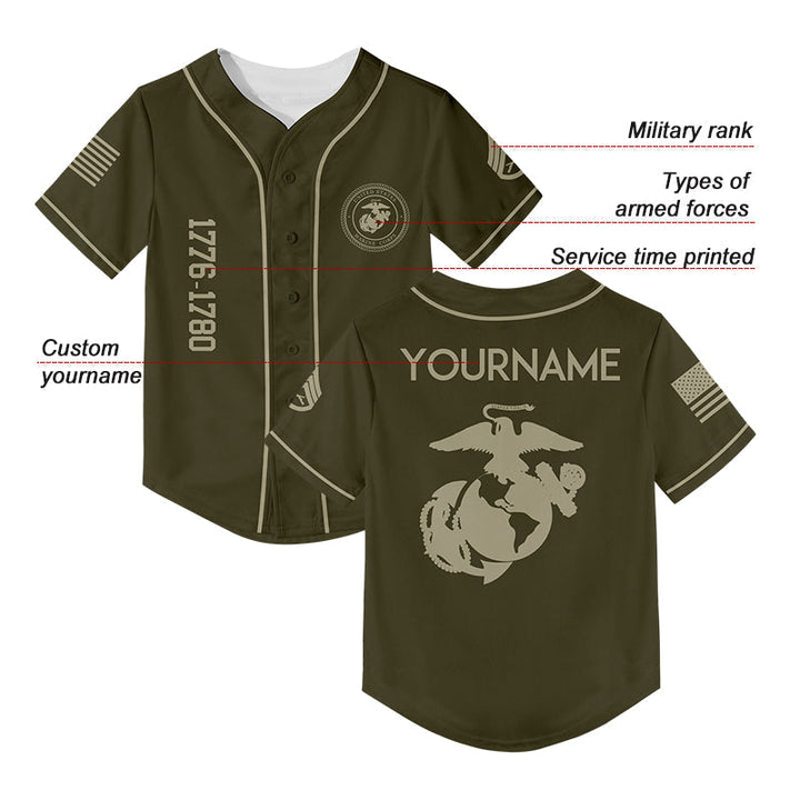 Custom Olive U.S Marine Corps Military Rank Veteran Name Baseball Jersey
