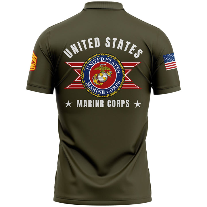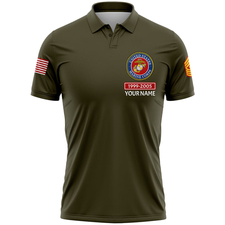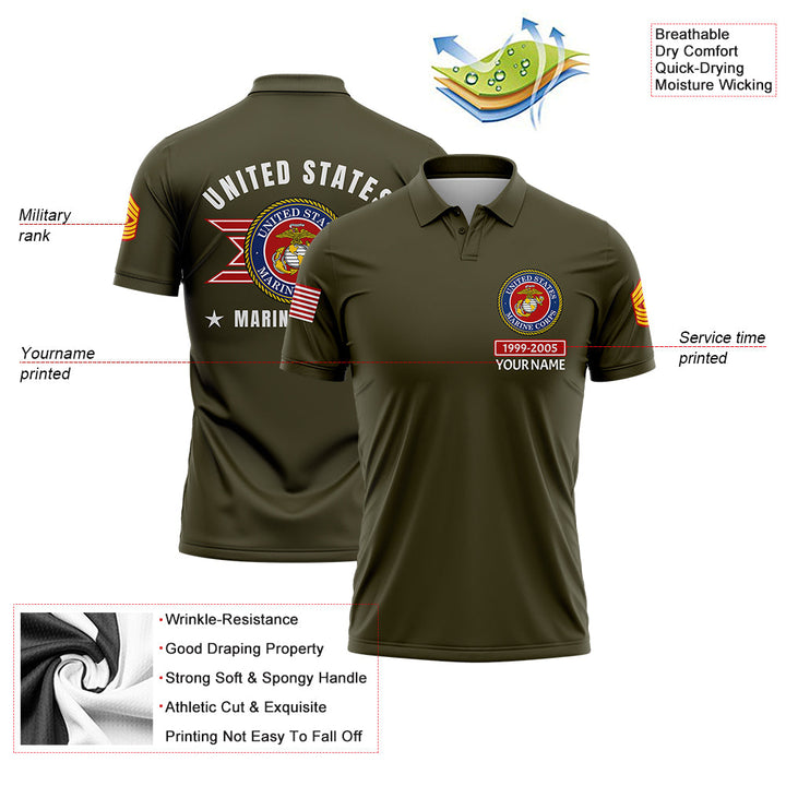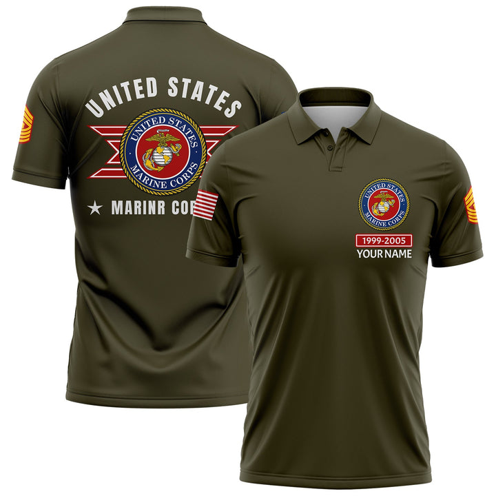 Custom Olive U.S Marine Corps Military Rank Veteran Name Golf Polo Shirt