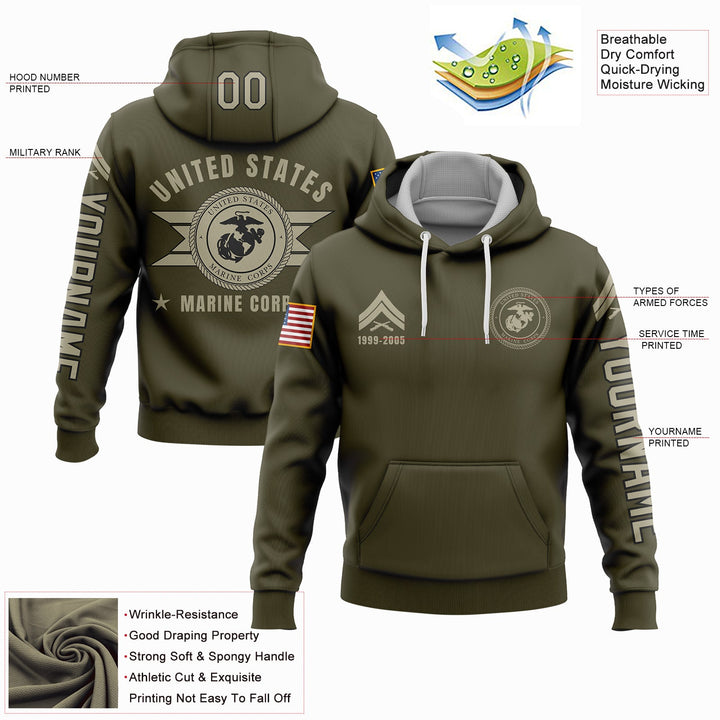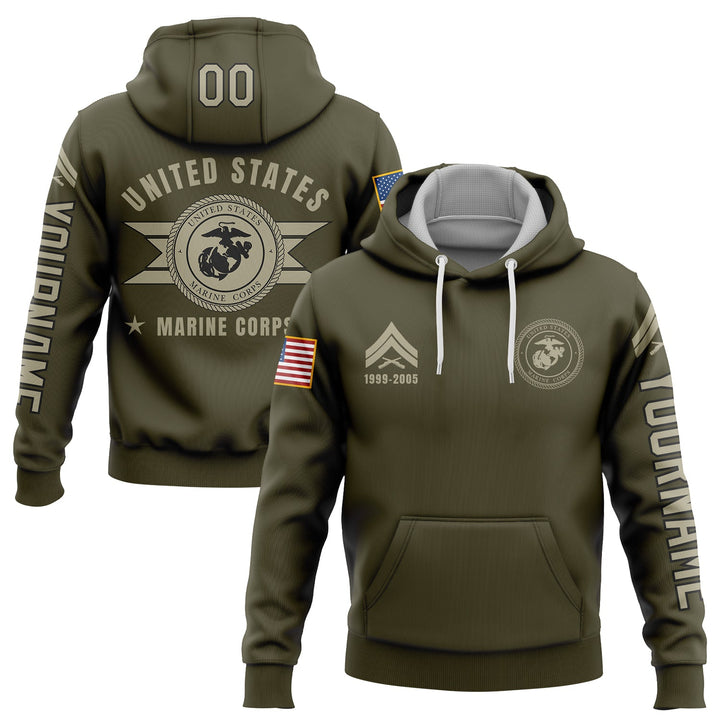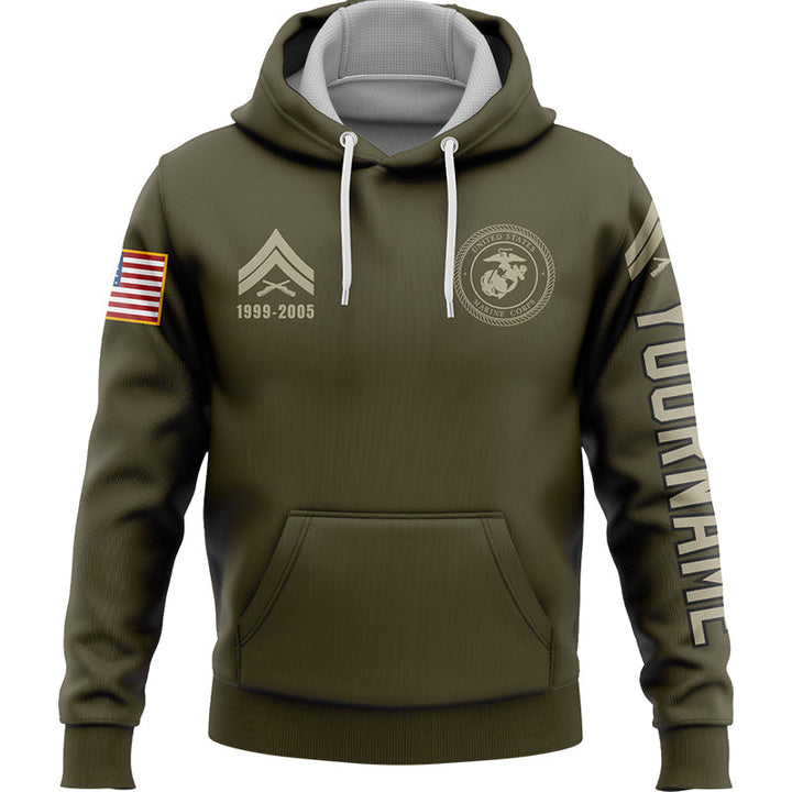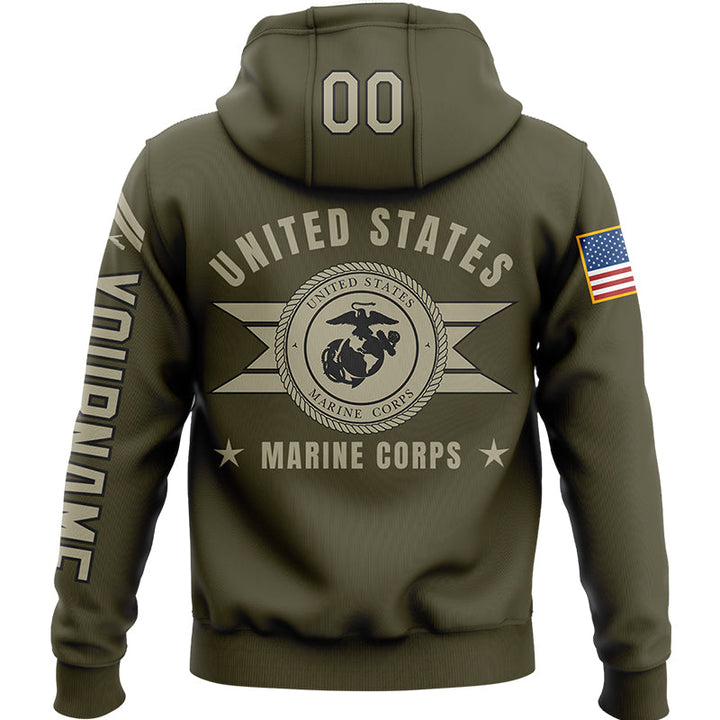 Custom Olive U.S Marine Corps Military Rank Veteran Name Number Hoodie