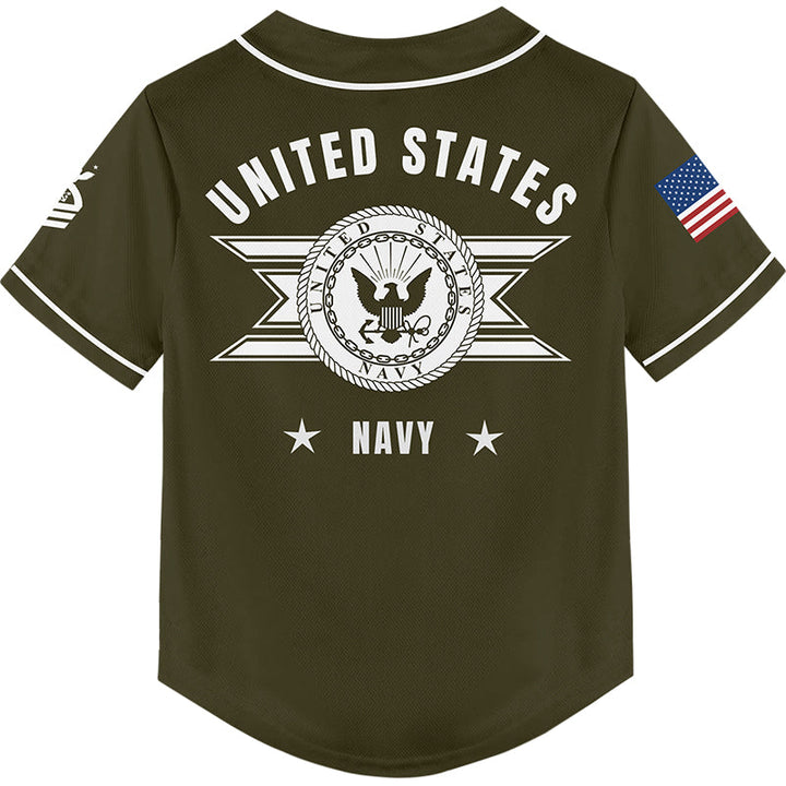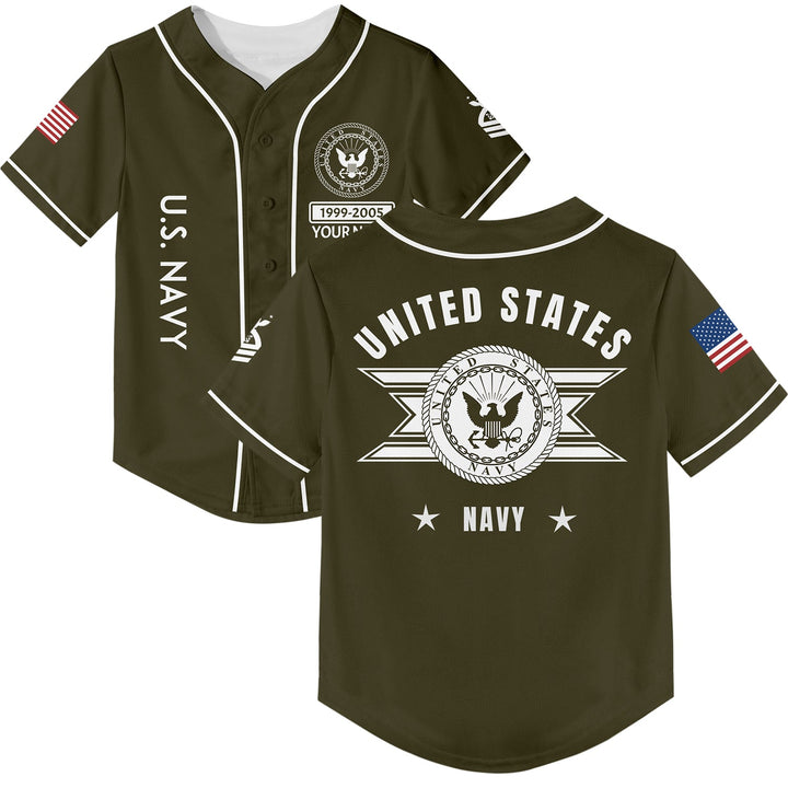 Custom Olive U.S Navy Military Rank Veteran Name Baseball Jersey
