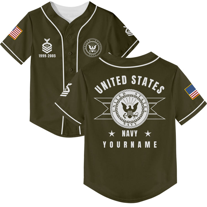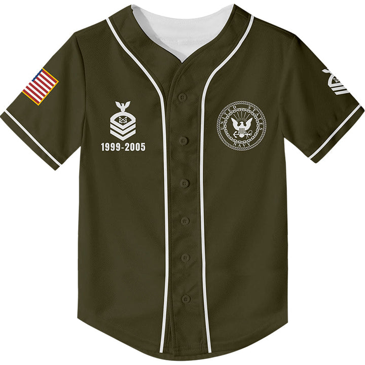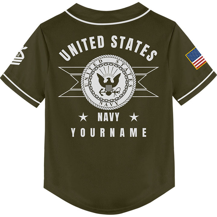 Custom Olive U.S Navy Military Rank Veteran Name Baseball Jersey