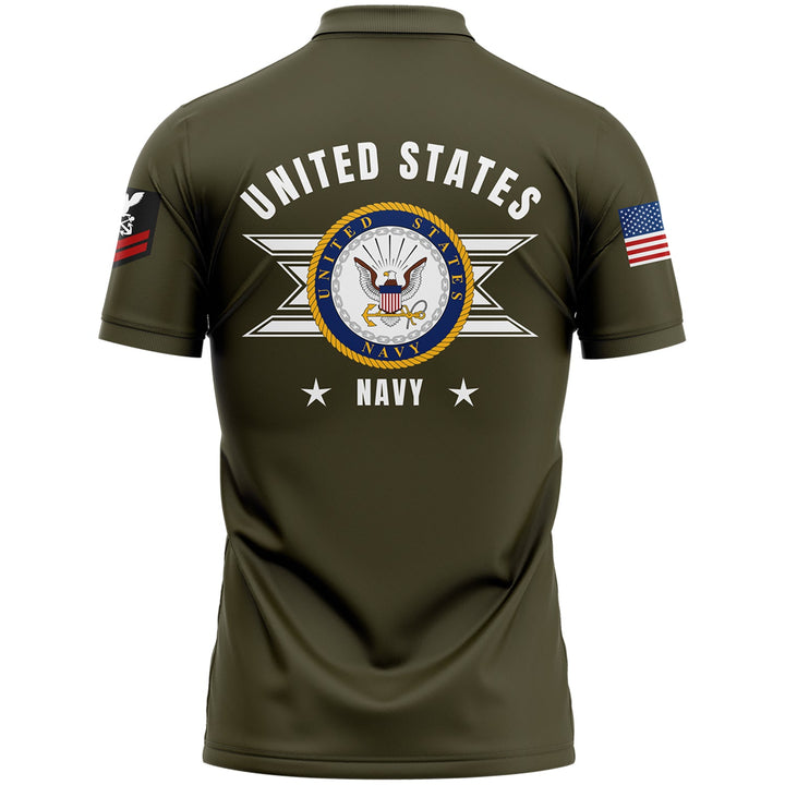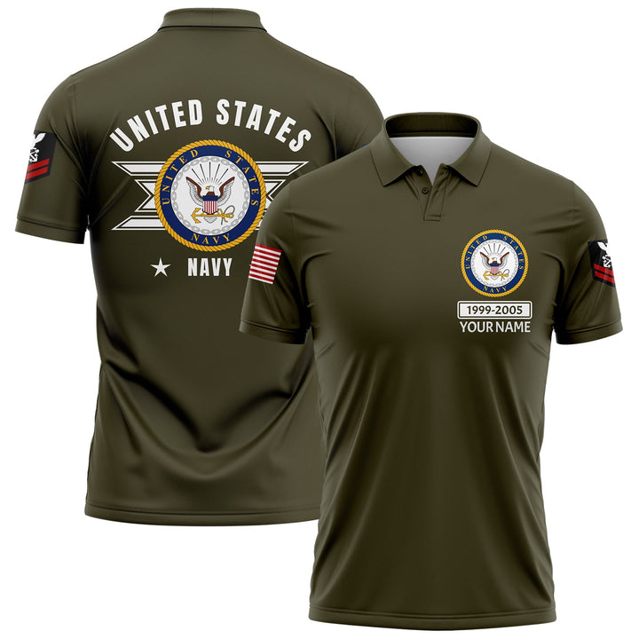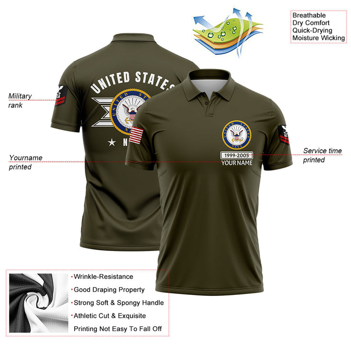 Custom Olive U.S Navy Military Rank Veteran Name Golf Polo Shirt