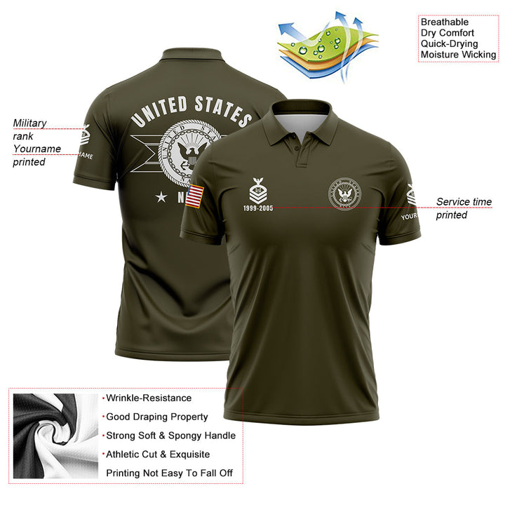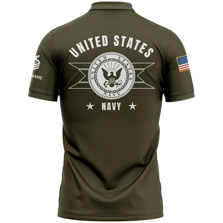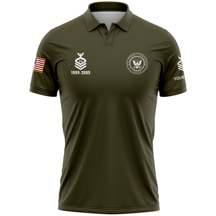 Custom Olive U.S Navy Military Rank Veteran Name Golf Polo Shirt