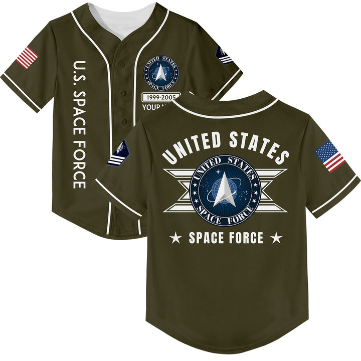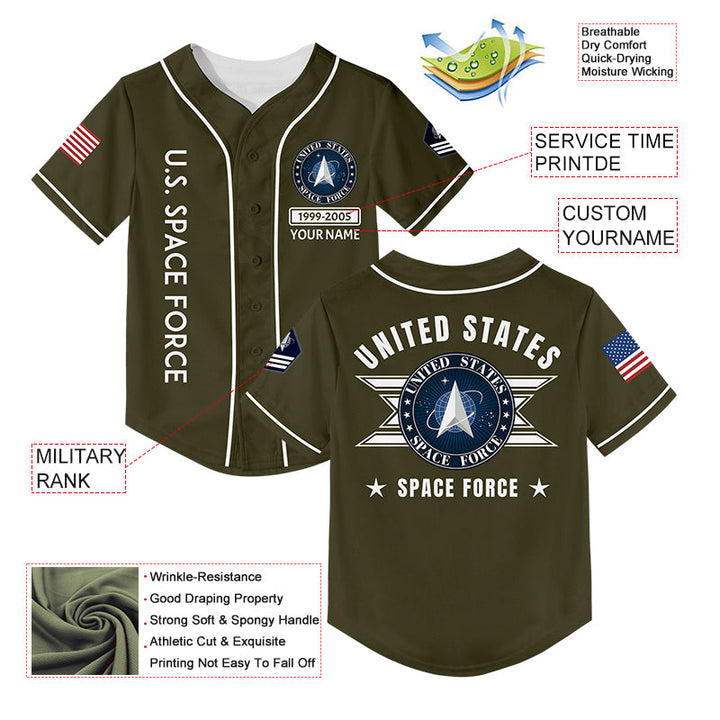 Custom Olive U.S Space Force Military Rank Name Baseball Jersey