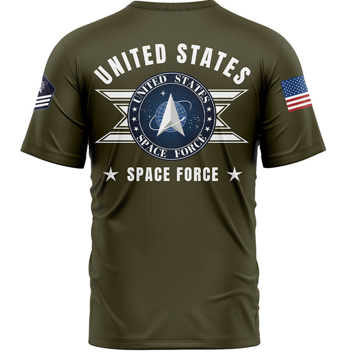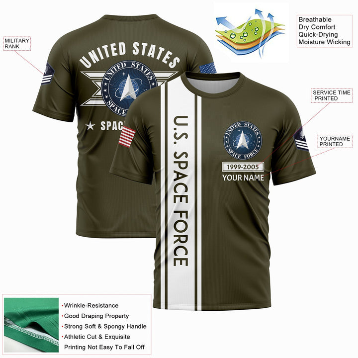 Custom Olive U.S Space Force Military Rank Name T-Shirt