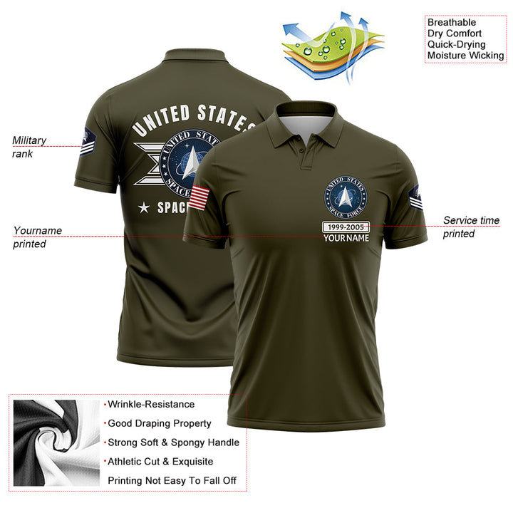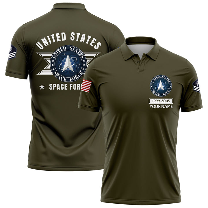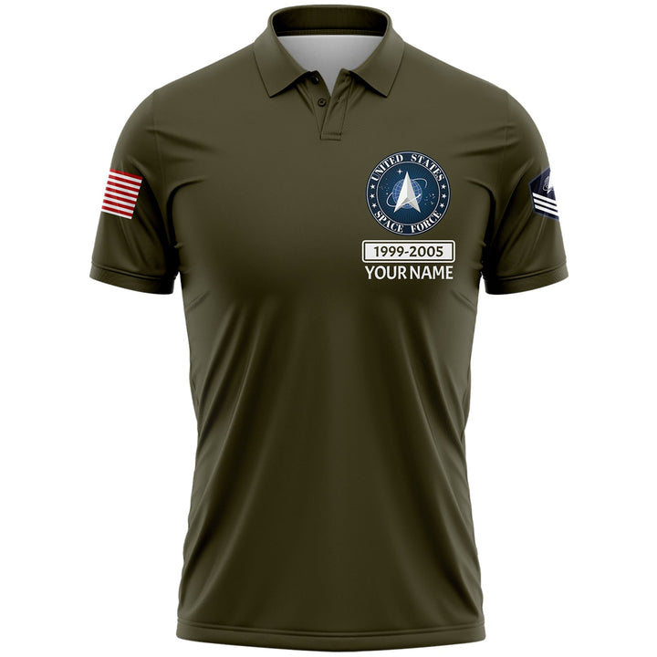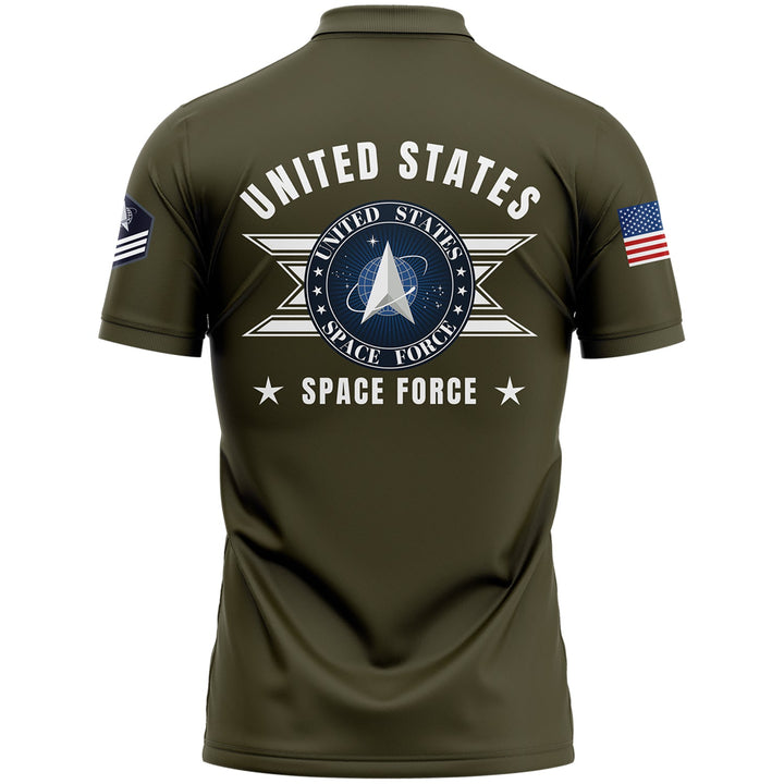 Custom Olive U.S Space Force Military Rank Veteran Name Golf Polo Shirt