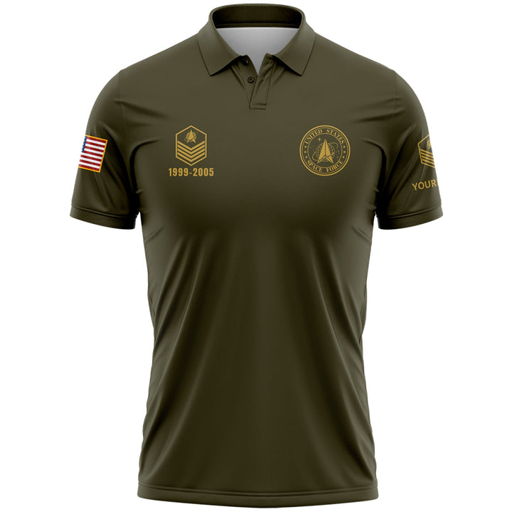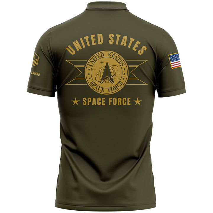 Custom Olive U.S Space Force Military Rank Veteran Name Golf Polo Shirt