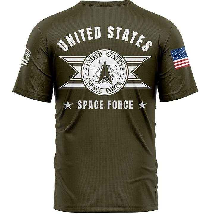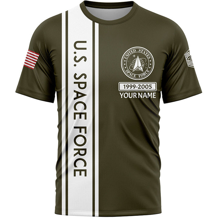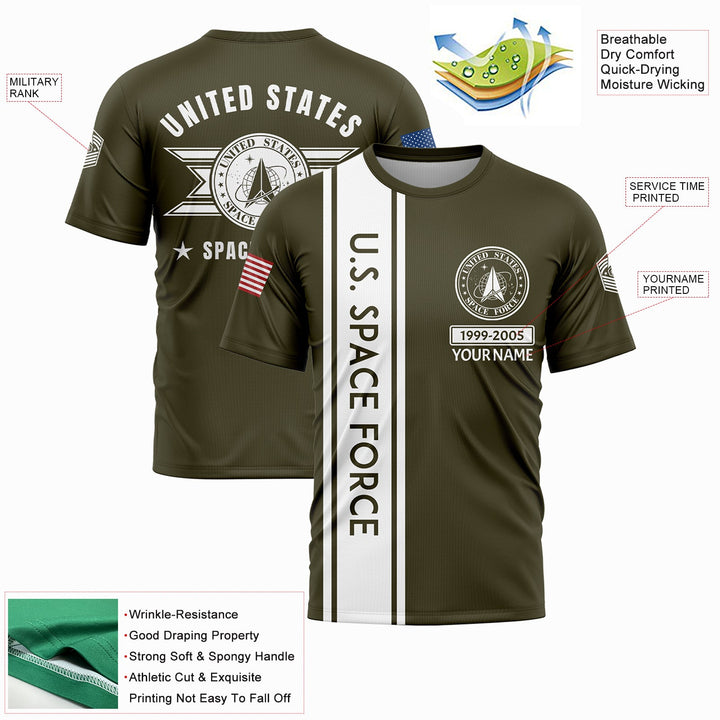 Custom Olive U.S Space Force Military Rank Veteran Name T-Shirt
