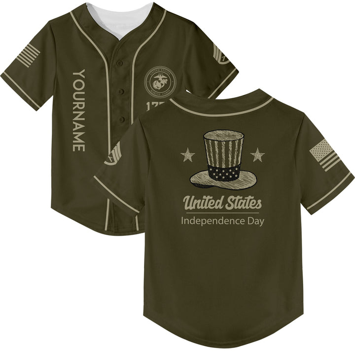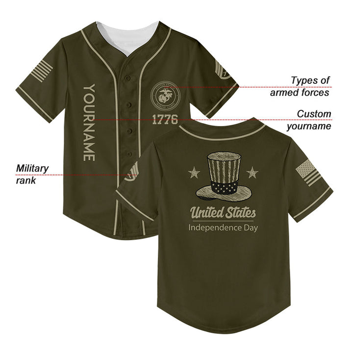 Custom Olive United States Military Rank Name Independence Day Baseball Jersey
