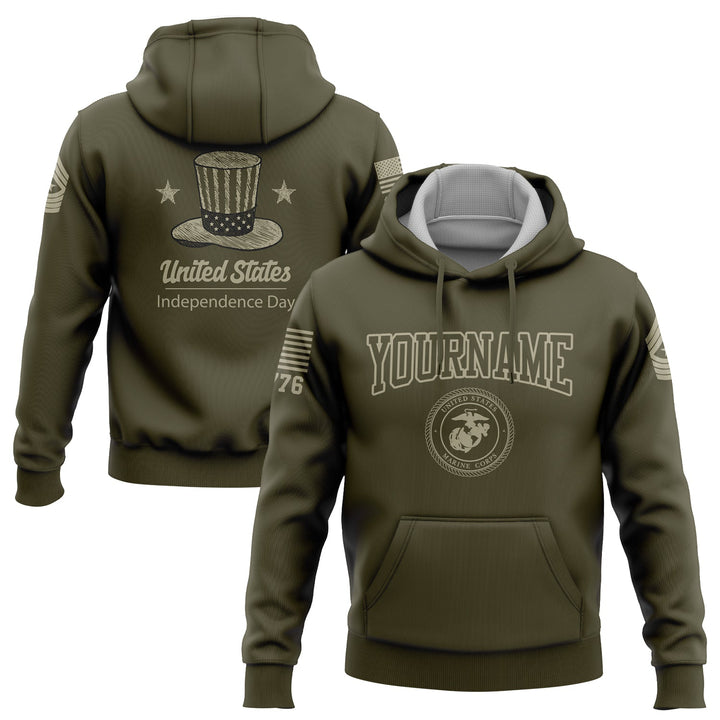 Custom Olive United States Military Rank Name Independence Day Hoodie | Father's Day Gifts