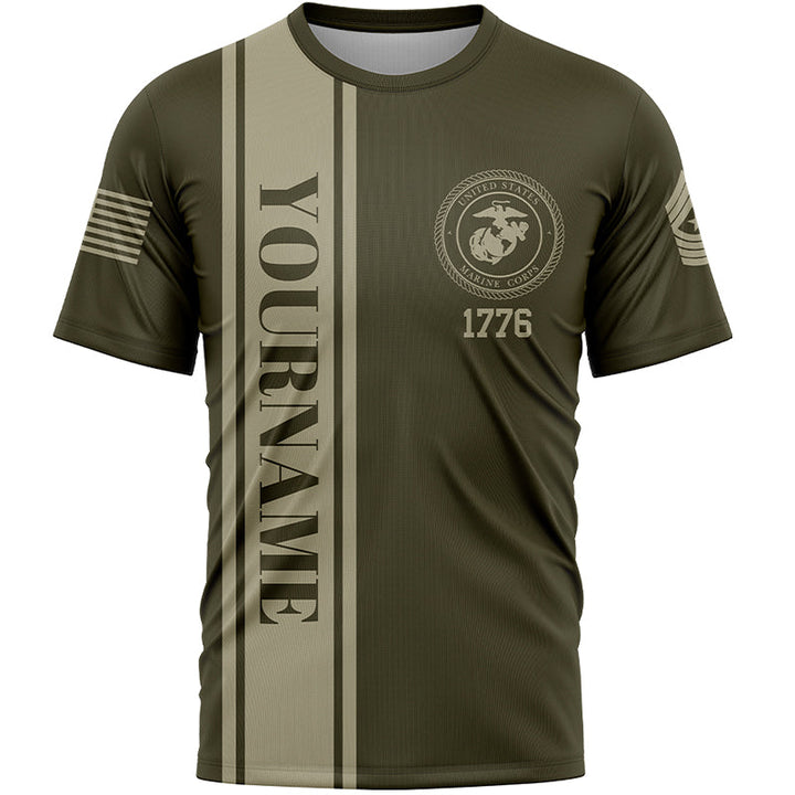 Custom Olive United States Military Rank Name Independence Day T-Shirt