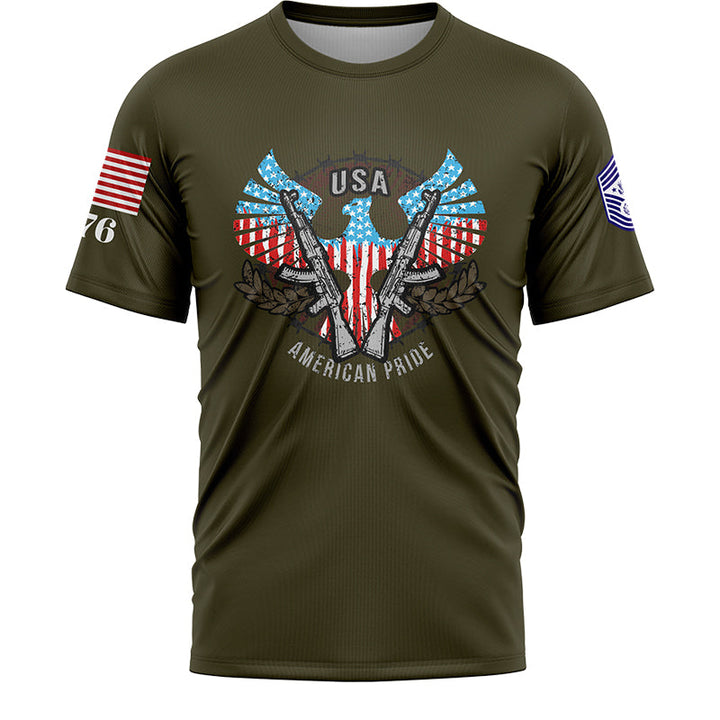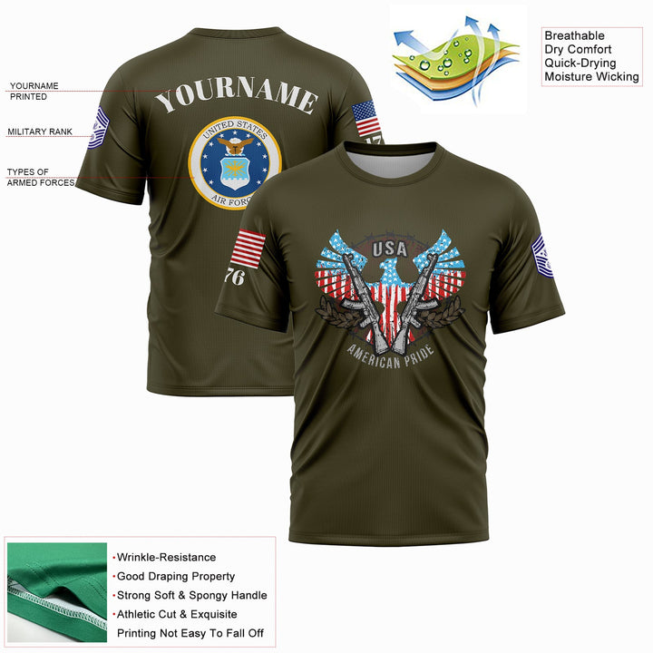 Custom Olive USA Eagle Pride 1776 American Flag U.S Air Force Military Rank Name T-Shirt