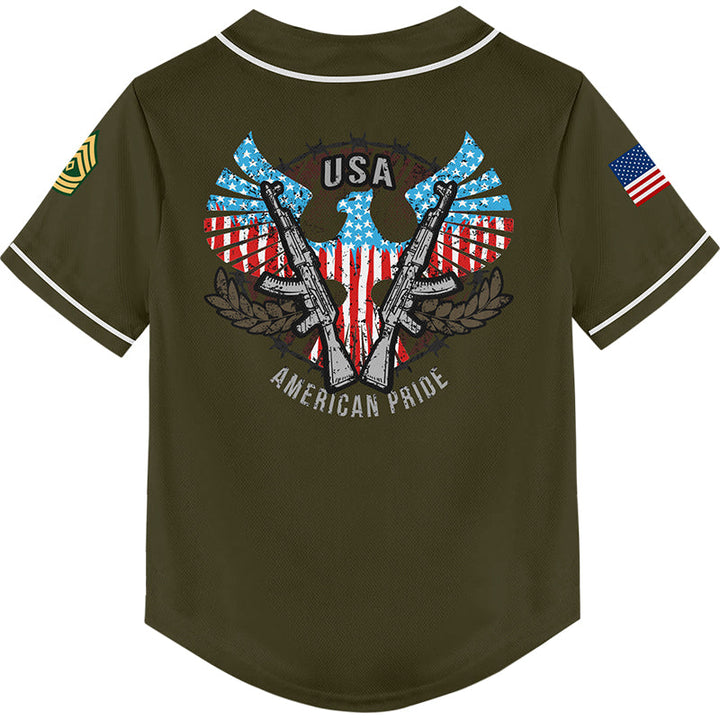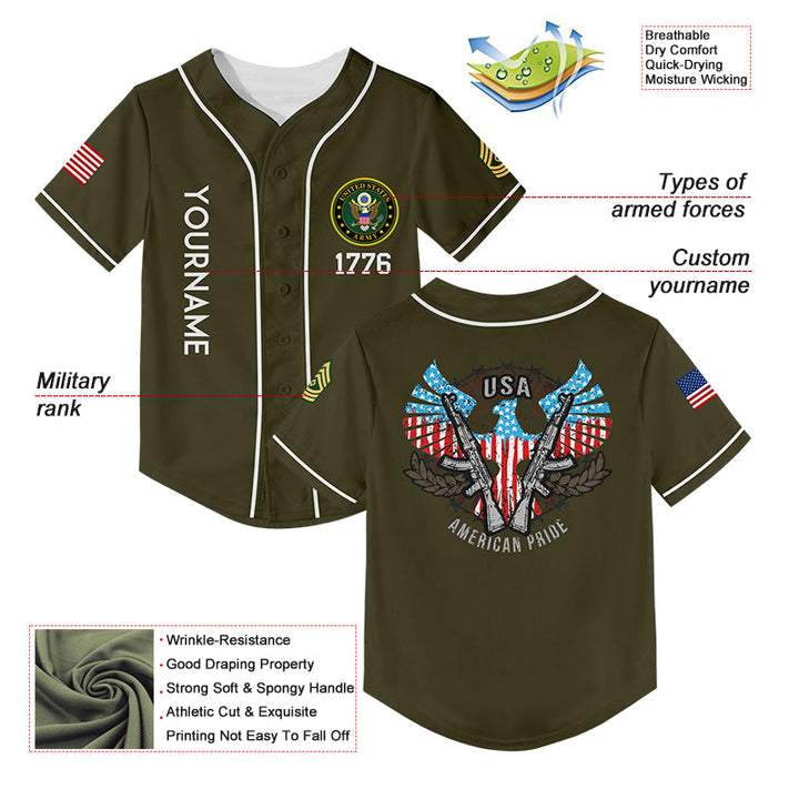 Custom Olive USA Eagle Pride 1776 American Flag U.S Army Military Rank Name Baseball Jersey
