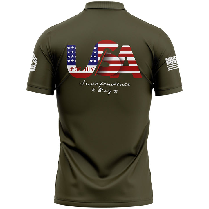 Custom Olive USA Military Rank Name Independence Day Golf Polo Shirt