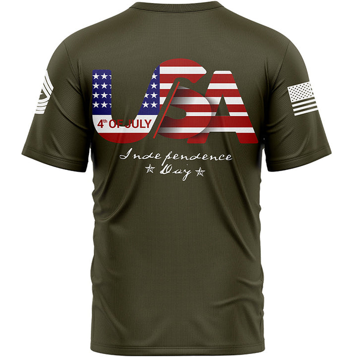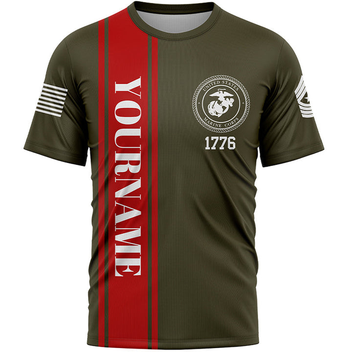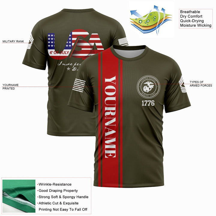 Custom Olive USA Military Rank Name Independence Day T-Shirt