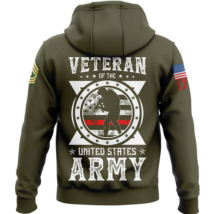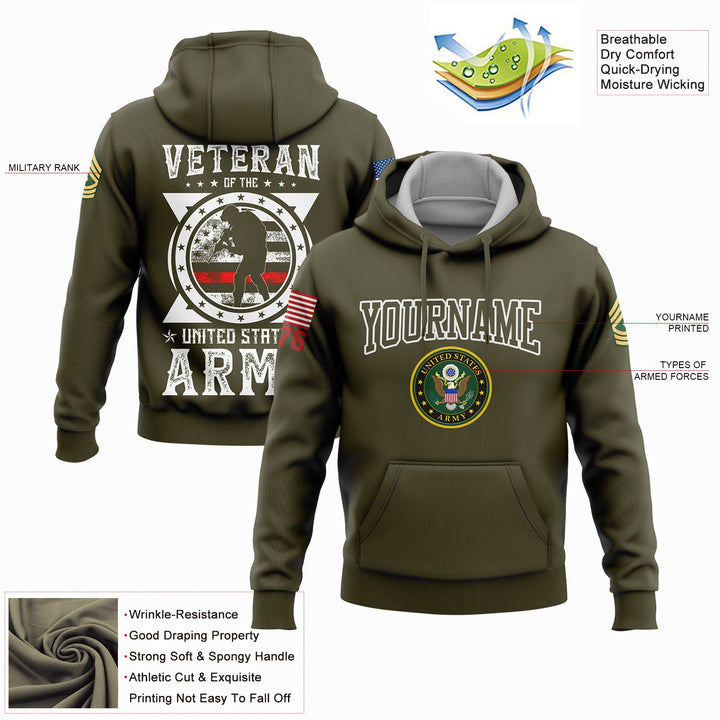 Custom Olive Veteran 1776 American Flag U.S Army Military Rank Name Hoodie